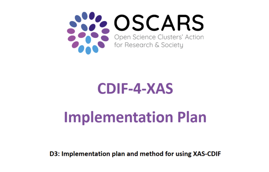 The OSCARS CDIF-4-XAS project is pleased to announce the publication of an extra deliverable (D3) the CDIF-4-XAS Implementation Plan.